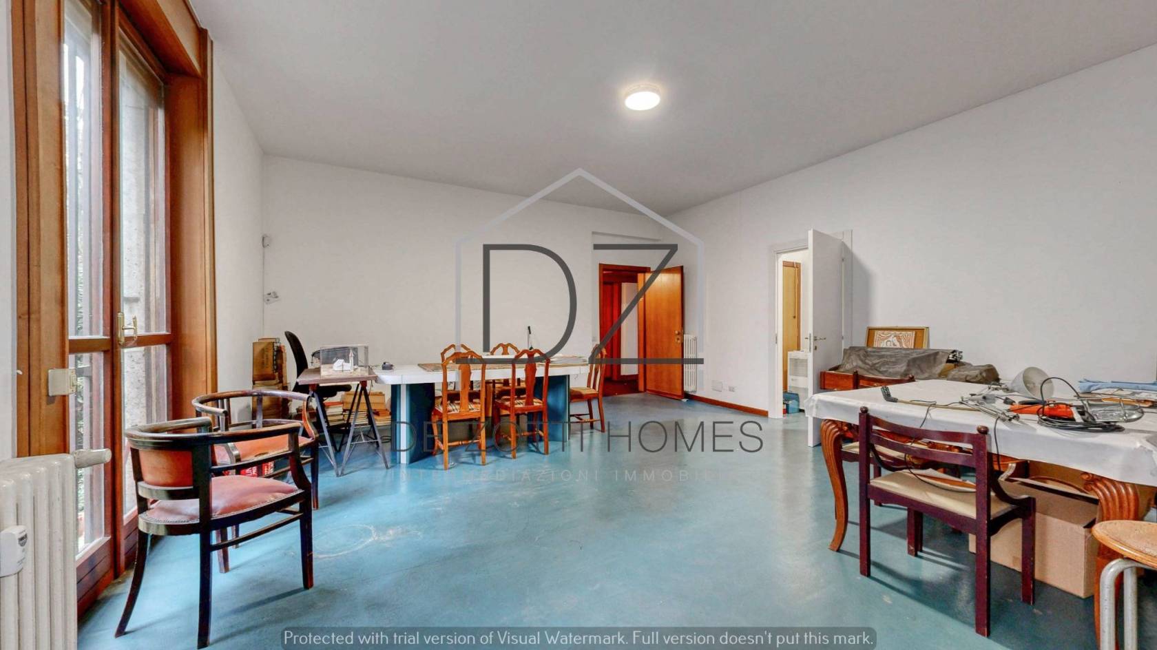 L'appartamento, di 103 mq, è attualmente configurato come openspace con pareti mobili oltre cucina e servizi, l'immobile si presta a una completa personalizzazione. La doppia esposizione garantisce ottima luminosità.
